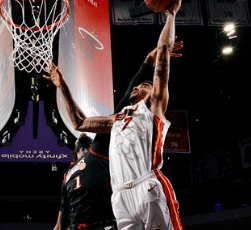 杜伦篮下顶着特纳强行上篮再中,活塞已领先雄鹿25分