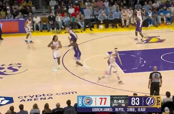 拉拉维亚单节拿到11分,湖人下半场轰出25-10反超雷霆6分