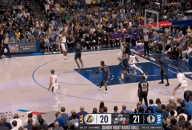 弗拉格撤步干拔三分再中砍下22分,独行侠已经领先湖人21分