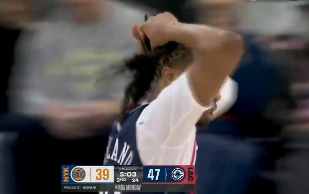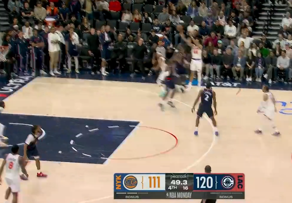 伦纳德顶着唐斯三分投进砍下24分,快船领先13分打停尼克斯