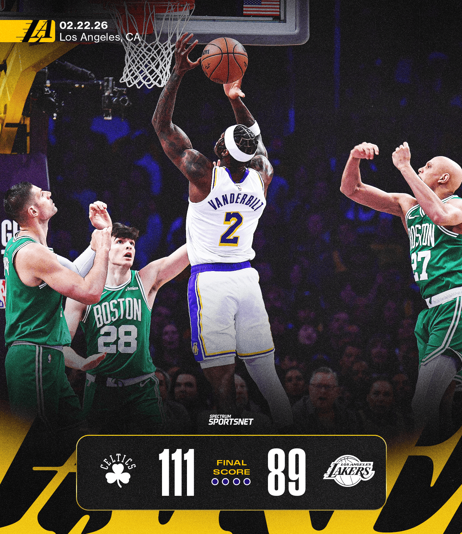 湖人本赛季主客场被凯尔特人双杀,两场分别输21分&22分