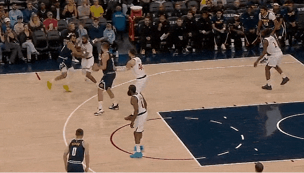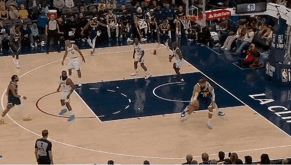 约基奇弧顶附近发牌,精准长传助攻戈登底角三分命中