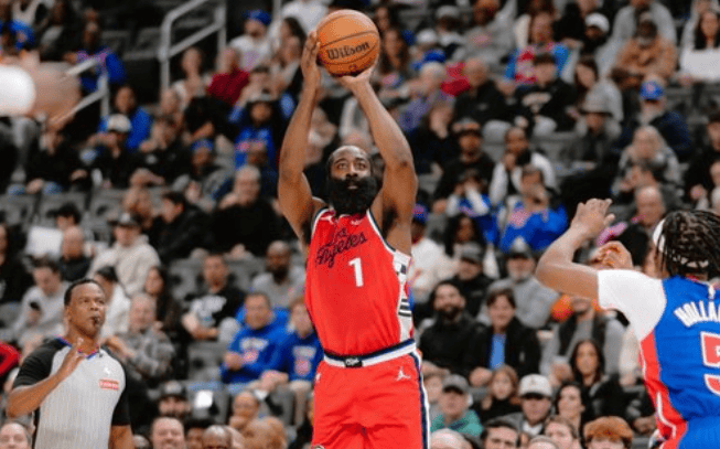 哈登45度坚决出手三分命中,快船下半场开局将分差缩小至7分