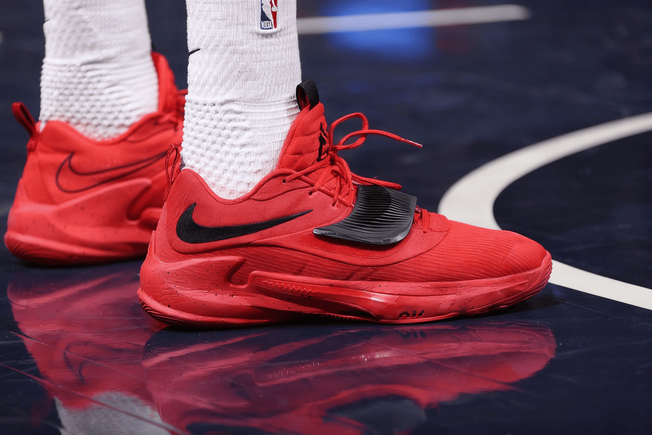 阿德托昆博穿着红色Freak3,得到26分7篮板4助攻