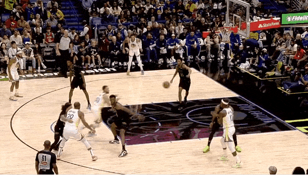 库里华丽转身不看人传球,理查德空切上篮被墨菲封盖