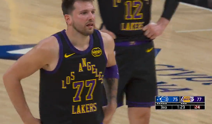 东契奇撤步投篮造成三分犯规,魔术挑战成功改为中圈跳球