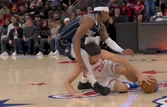 弗拉格突破上篮不中,伊森篮下被漏防暴扣后领先独行侠4分