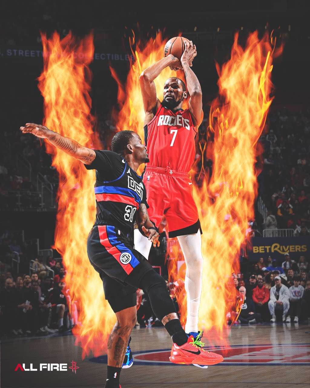 活塞发布对阵火箭终场海报:四连胜终结,战绩来到32胜11负