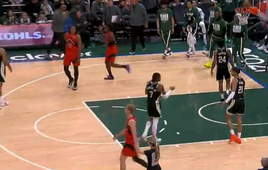 半场:雄鹿以51-60落后猛龙,奎克利10投6中砍下20分