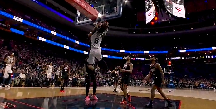 贝利快攻一打零滑翔劈扣得手,爵士领先奇才到17分