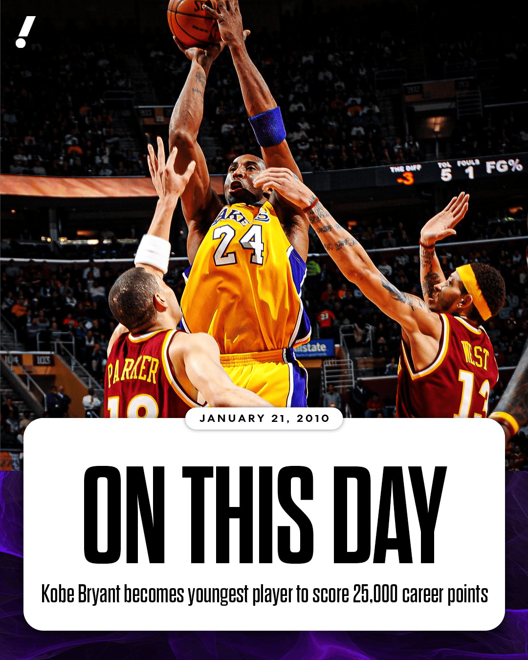 雅虎体育:2010年的今天,科比成为历史最年轻的25000分先生
