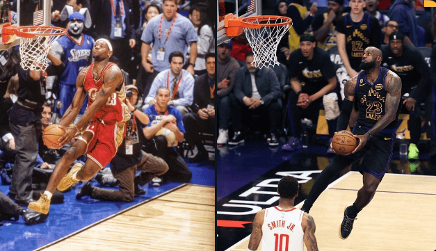 斯马特掏球抢断杜兰特,詹姆斯罚球线一步起飞上篮造成犯规