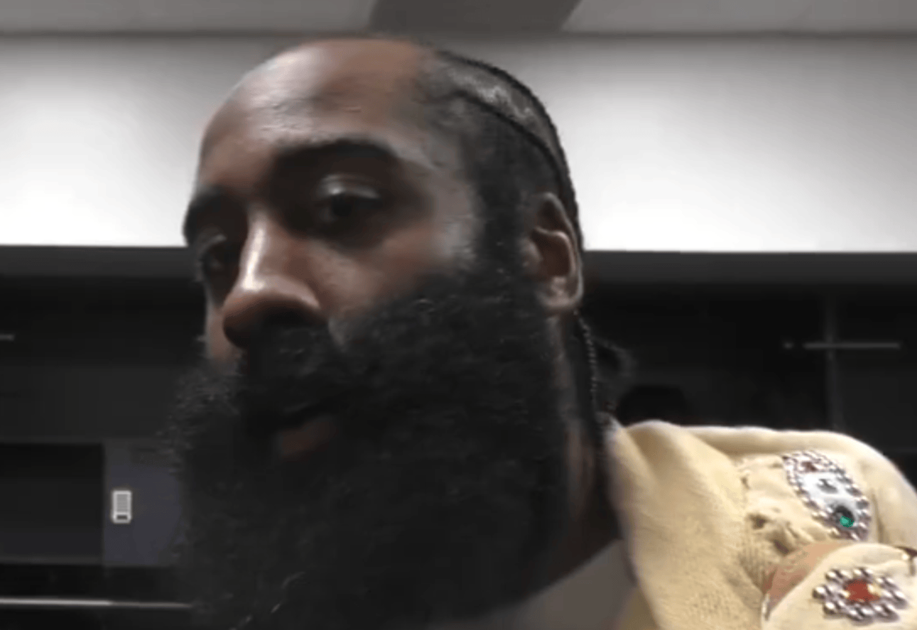 哈登杀入禁区再次被对手大帽扇飞,本场个人已被盖7次