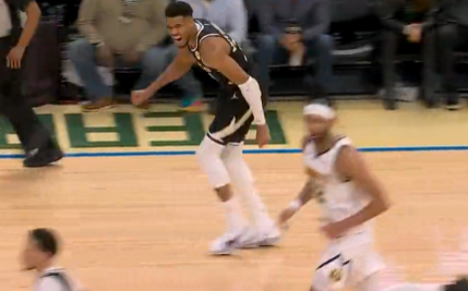 字母哥无对抗下脚部意外受伤,在球员通道徘徊后返回球场