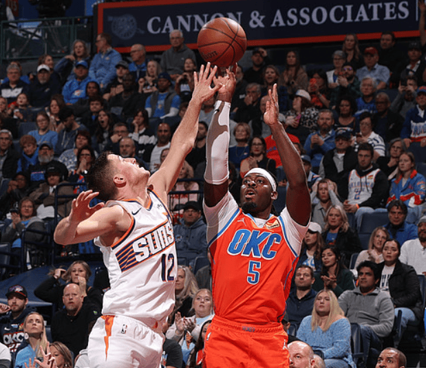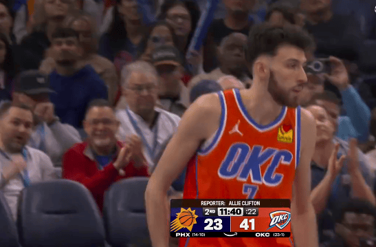 扬布拉德投进全队第20记三分,雷霆末节领先太阳至50分