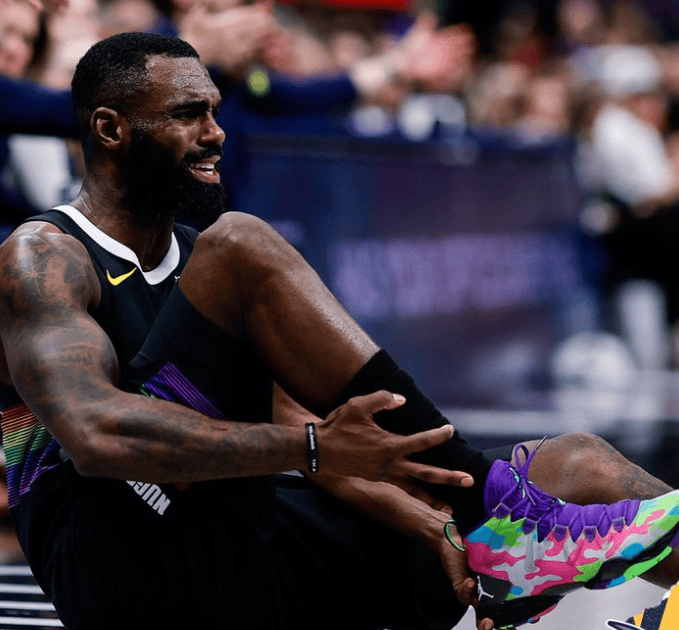 加福德穿着安踏先驱2代,得到16分11篮板1助攻