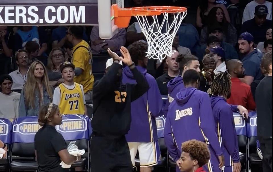 美媒晒詹姆斯场边空手做投篮动作:他真的很想上场打球
