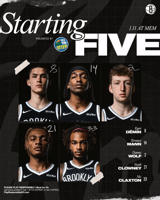 篮网首发:德明、曼、沃尔夫、克劳尼、克拉克斯顿