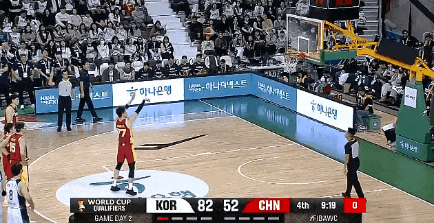 男篮世预赛:中国男篮半场三分12中1,韩国男篮10中7
