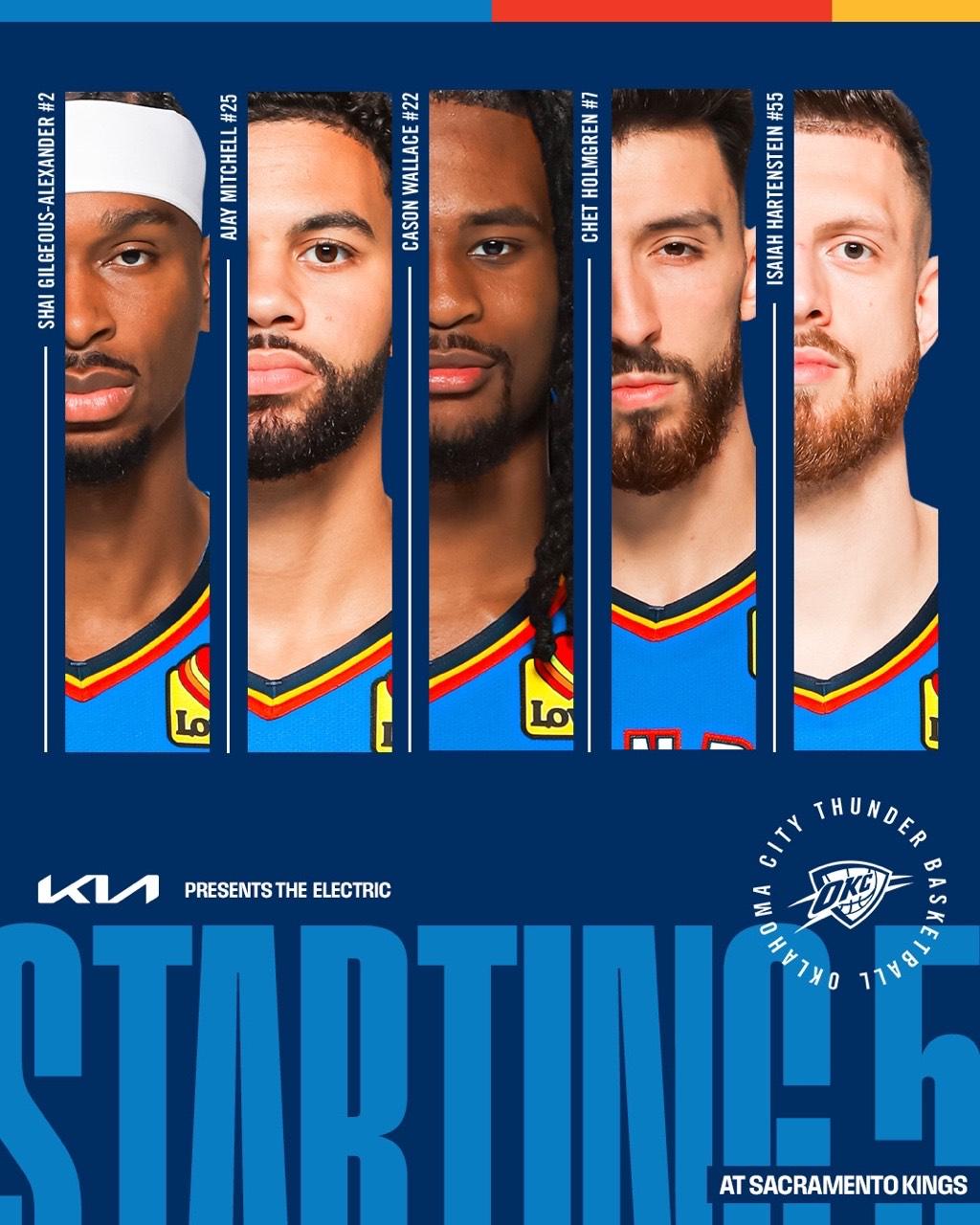 切特复出!雷霆首发:SGA、米切尔、华莱士、霍姆格伦和哈滕