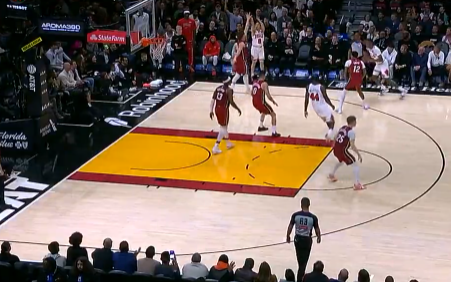 贾巴里-史密斯半场9中5,三分4中3得到13分4篮板1助攻