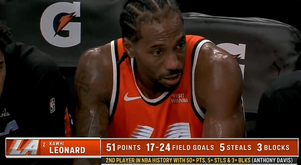 伦纳德26中17狂砍55分,生涯首个50+&追平快船队史最高得分
