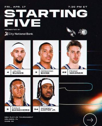 魔术首发:萨格斯,贝恩,瓦格纳,班凯罗,卡特