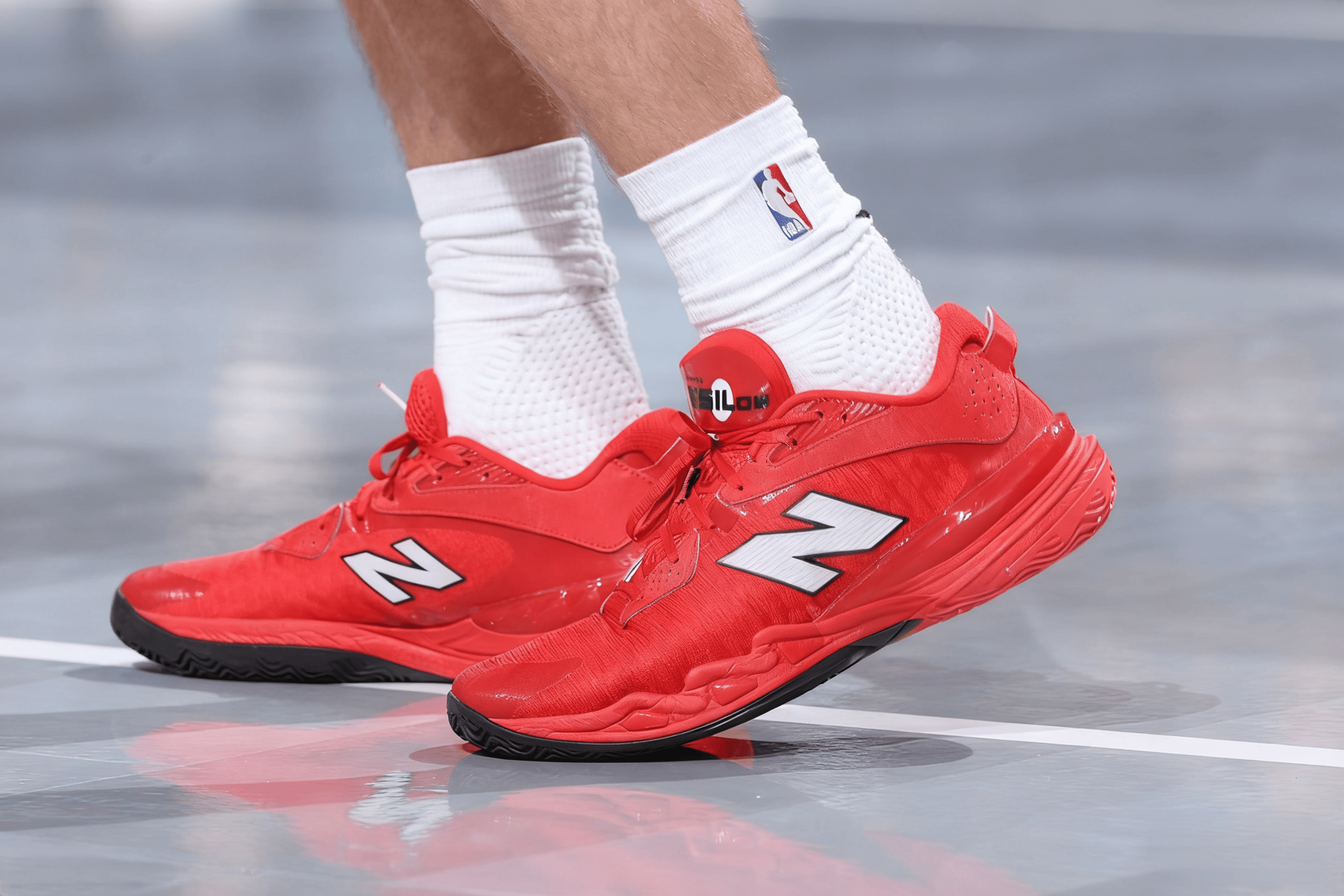 虎扑 13回复弗拉格穿着红色Hesi Low v2,得到12分6篮板2助攻
