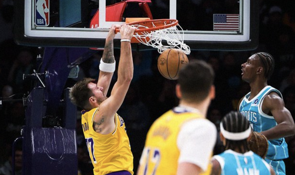 力拔山兮!湖人官媒晒卢卡-东契奇禁区双手暴扣赛场照