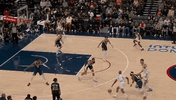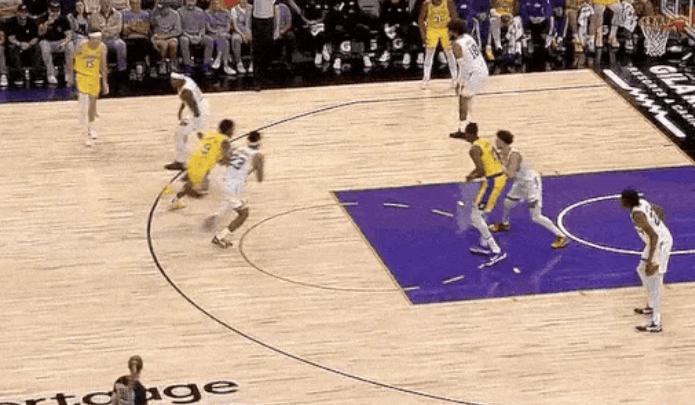 摩尔快攻面对防守,高高跃起完成隔人暴力单臂砸扣