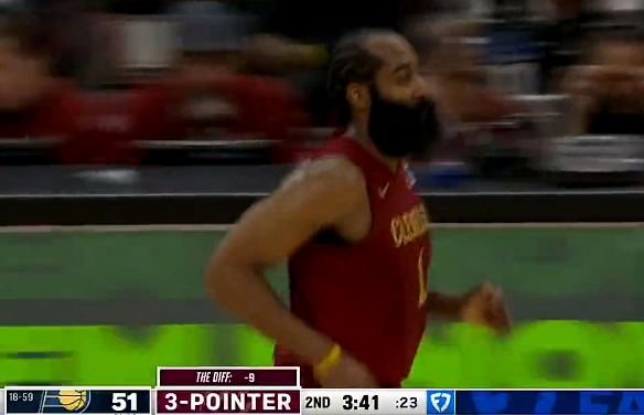 哈登弧顶接球投进3+1,助骑士止血追进个位数分差打停步行者