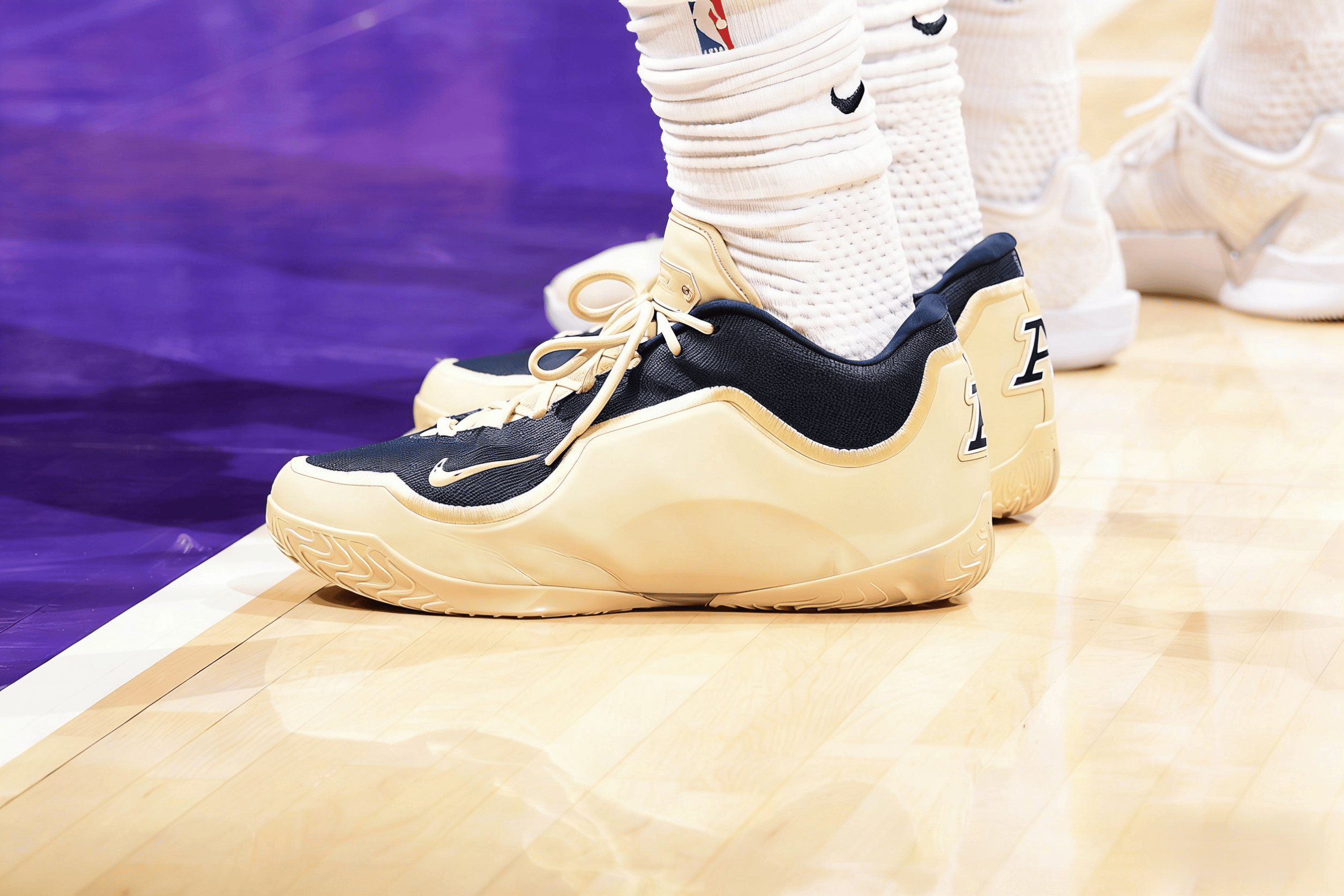 詹姆斯穿着阿克伦大学配色Lebron23,得到29分9板6助攻2抢断