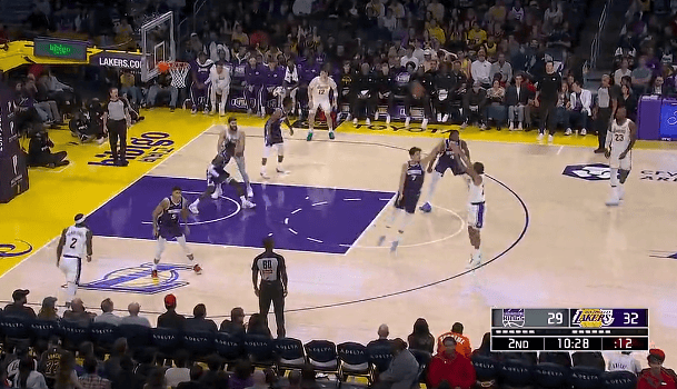 东契奇造成犯规再抛投打成2+1拿到15分,湖人领先国王至10分