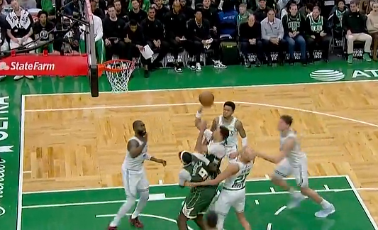 西塞防守中被吹罚犯规倒地,随后上演鲤鱼打挺直接弹起