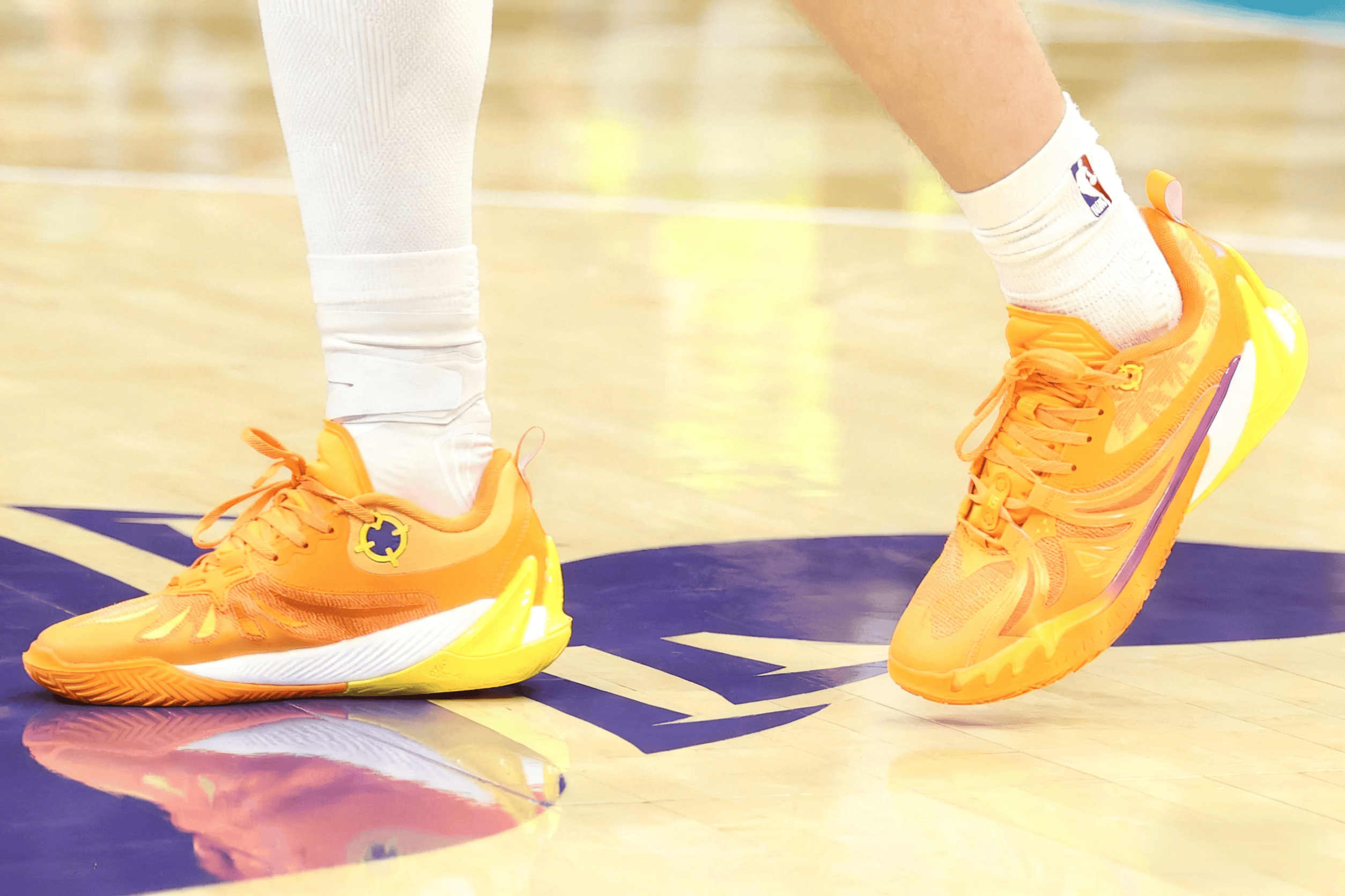 里夫斯穿着日落配色准者AR3,得到24分5篮板7助攻