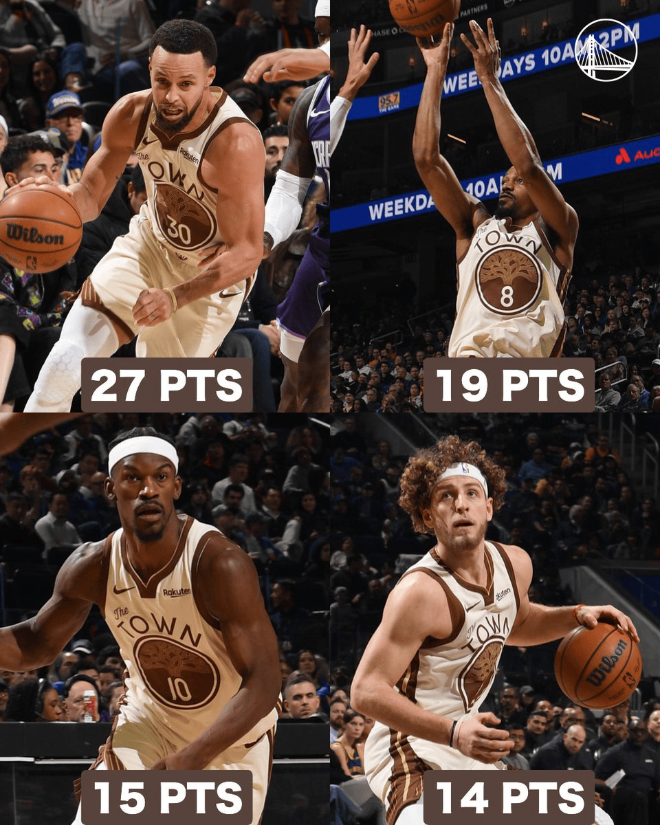 7人得分上双!勇士官方晒球员数据海报:均衡地进攻⚔️