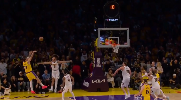 里夫斯故意罚球不中,抢到前场板抛投命中,湖人掘金进加时