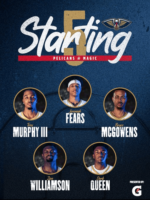 鹈鹕首发:费尔斯、墨菲三世、麦高文斯、奎因、蔡恩