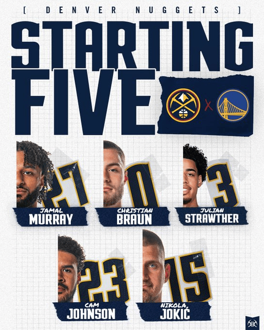 掘金首发:默里、布劳恩、约翰逊、斯特劳瑟、约基奇