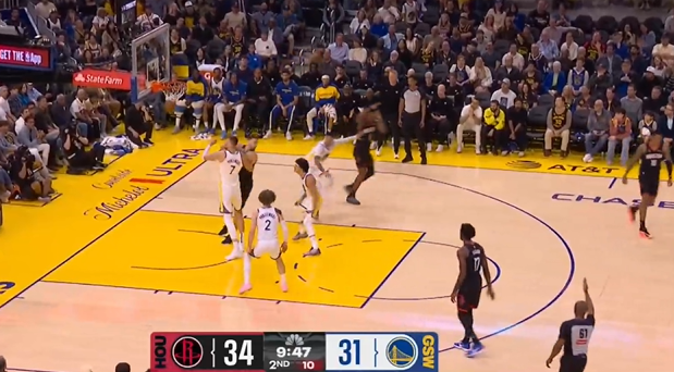 库里迎着伊森高难度再中,引领一波11-0的高潮勇士追到差4分