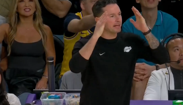 哈滕接球失误出界裁判吹雷霆前场球,湖人挑战成功拿回球权