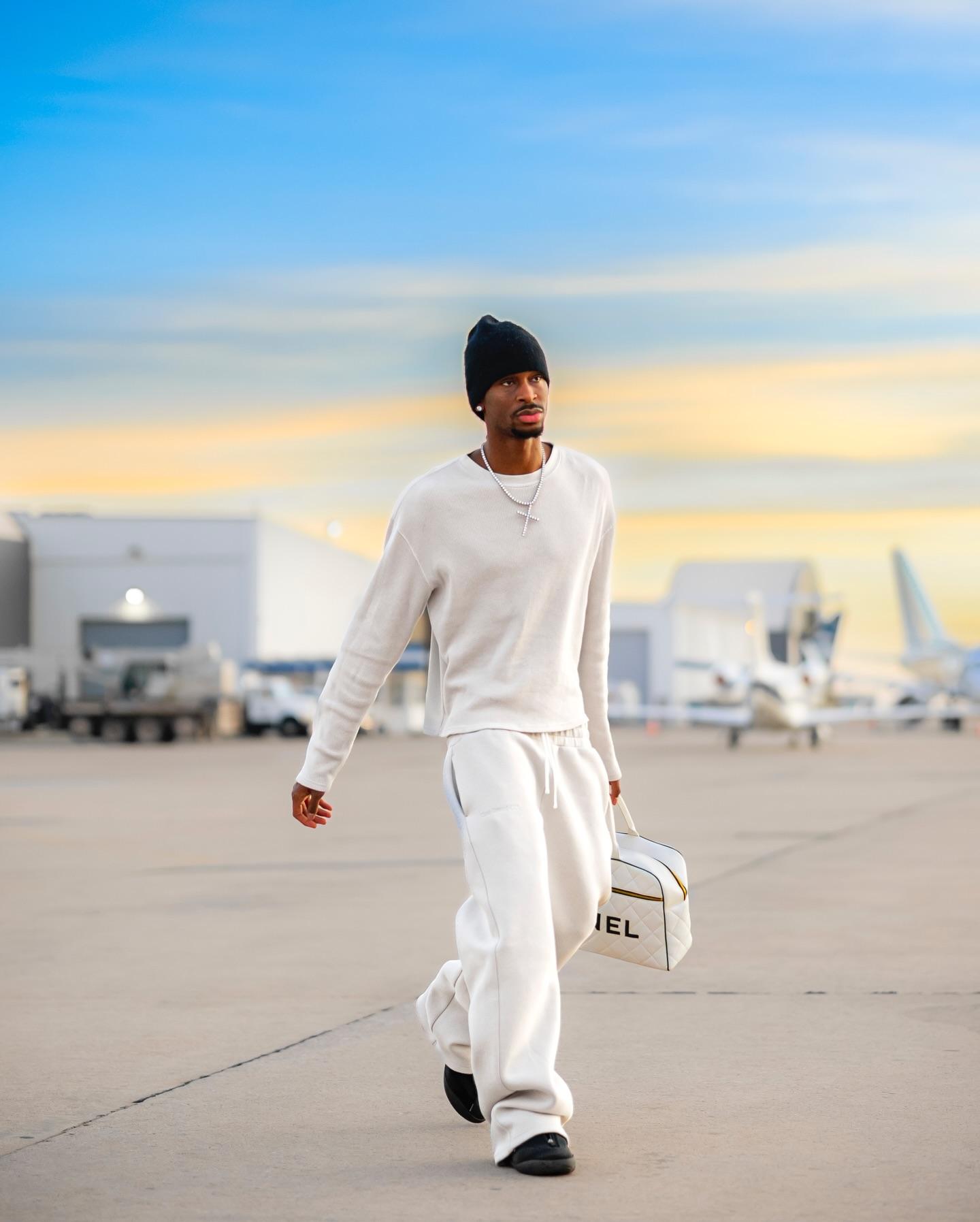 火箭社媒晒申京身穿时尚服饰步入今日比赛场馆