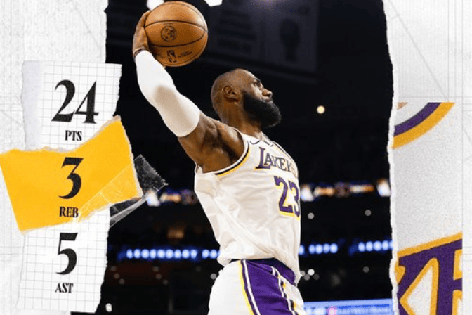 湖人官方发布詹姆斯数据海报:全场得到24分3篮板5助攻2抢断