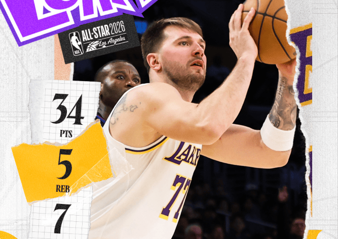 湖人官方发布东契奇数据海报:全场得到34分5篮板7助攻3抢断