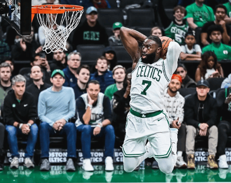 赶紧收藏!凯尔特人分享杰伦-布朗双手暴扣的精彩瞬间