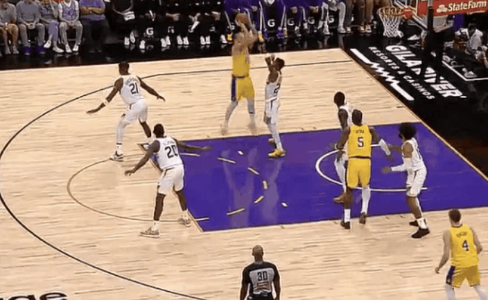 拉开分差!里夫斯弧顶三分再中,湖人领先14分打停勇士