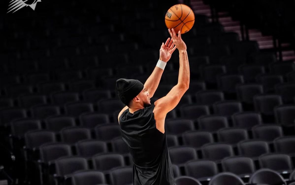 今日首露真容?布克热身备战开拓者,脚下球鞋被打码处理