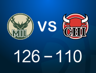 [赛后]公牛110-126雄鹿,吉迪16分7板14助,阿德托昆博41分15板9助
