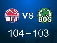 活塞1分险胜凯尔特人取得3连胜,同时结束凯尔特人2连胜