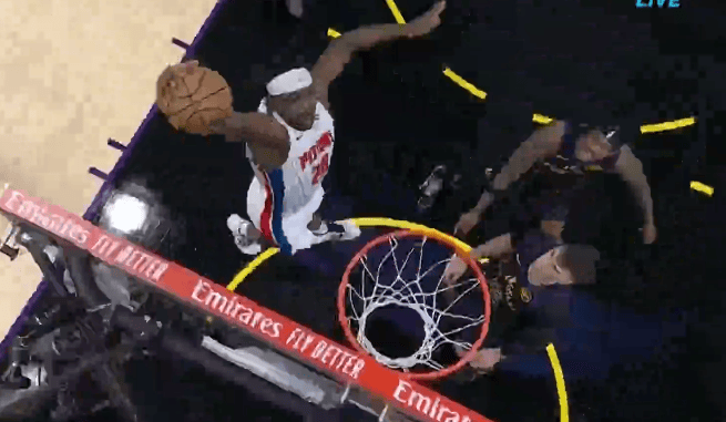斯图尔特突破轻松暴扣得手,活塞次节已经领先湖人12分